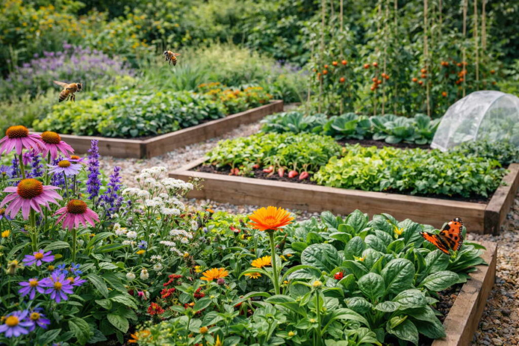 I denne guide får du en evergreen tilgang til blomster i køkkenhaven, planter der hjælper grøntsager, insekter i køkkenhaven og naturlig balance i haven. Målet er en køkkenhave, der både giver mad, ser indbydende ud og fungerer som et lille økosystem, hvor du får hjælp til at dyrke i stedet for at kæmpe mod naturen.