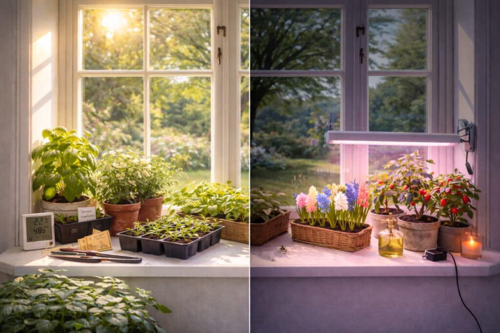 Når du får styr på lys til planter indendørs og lærer at arbejde med vinduets mikroklima, bliver alt andet lettere. Planterne bliver tættere, grønnere og mere produktive, og din vindueskarm bliver et sted, der giver glæde og udbytte hele året.